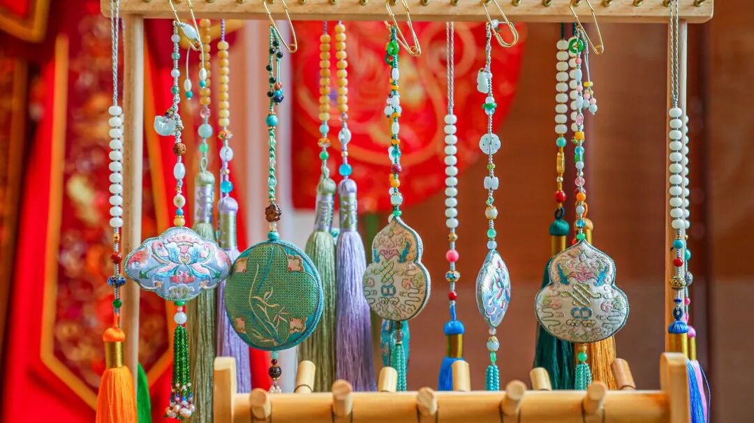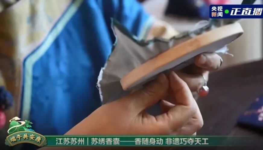 吴地绣娘们一针一线绣制的苏绣香包、随着两千余年的历史文明穿越而来,“纫秋兰以为佩”的传统,演变成了中国人文化的仪式。其中放入驱蚊防虫的中草药,或挂于胸前,或着当作挂件挂在包上车上,都是一份精致祥和的祝福。苏绣市级非遗代表性传承人府向红结合苏绣针法介绍了精细雅洁的苏绣和形态各异的香囊,还给观众展示了绣娘基本功:劈丝,同时也指导现场观众进行苏绣香囊的体验。