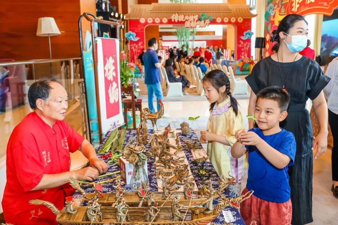 除了直播中介绍的这些,现场还有苏州非遗传承人制作棕编、剪纸等多项体验活动,可谓精彩纷呈,满满都是江南水乡端午味道。