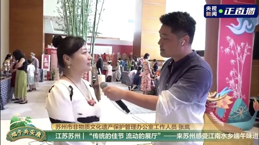 6月3日下午,央视总台记者在苏州“非一般的展厅”现场连线央视新闻客户端直播《正是端午好风景 云游共安康》,进行了端午吴地民俗直播。期间,通过央视新闻客户端,央视新闻视频号,央视新闻微博号等强力矩阵同时直播,截止发稿,全国1011.8万人次在线观看。