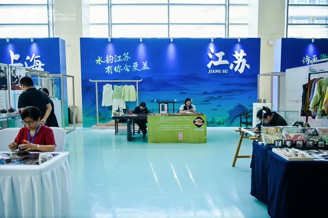 苏绣非遗新秀马怡红指尖翻飞,细如发丝的彩线在绷架上穿梭,将江南水乡的灵动呈现于绣品之上,引得观众驻足欣赏针尖上的匠心。