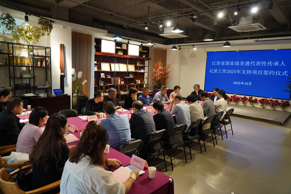 10月16日,江苏省国家级非遗代表性传承人记录工作2025年支持项目签约仪式在江苏省文化馆顺利举行。江苏省文化和旅游厅非遗处二级调研员叶青,江苏省文化馆党总支书记、馆长、江苏省非遗保护中心主任赵彦国出席仪式并讲话。2025年支持项目所涉市的非遗保护中心负责人、项目保护单位负责人、代表性传承人、学术专员以及执行团队人员约30人参加了本次活动。仪式由江苏省非遗保护中心办公室主任范萍主持。